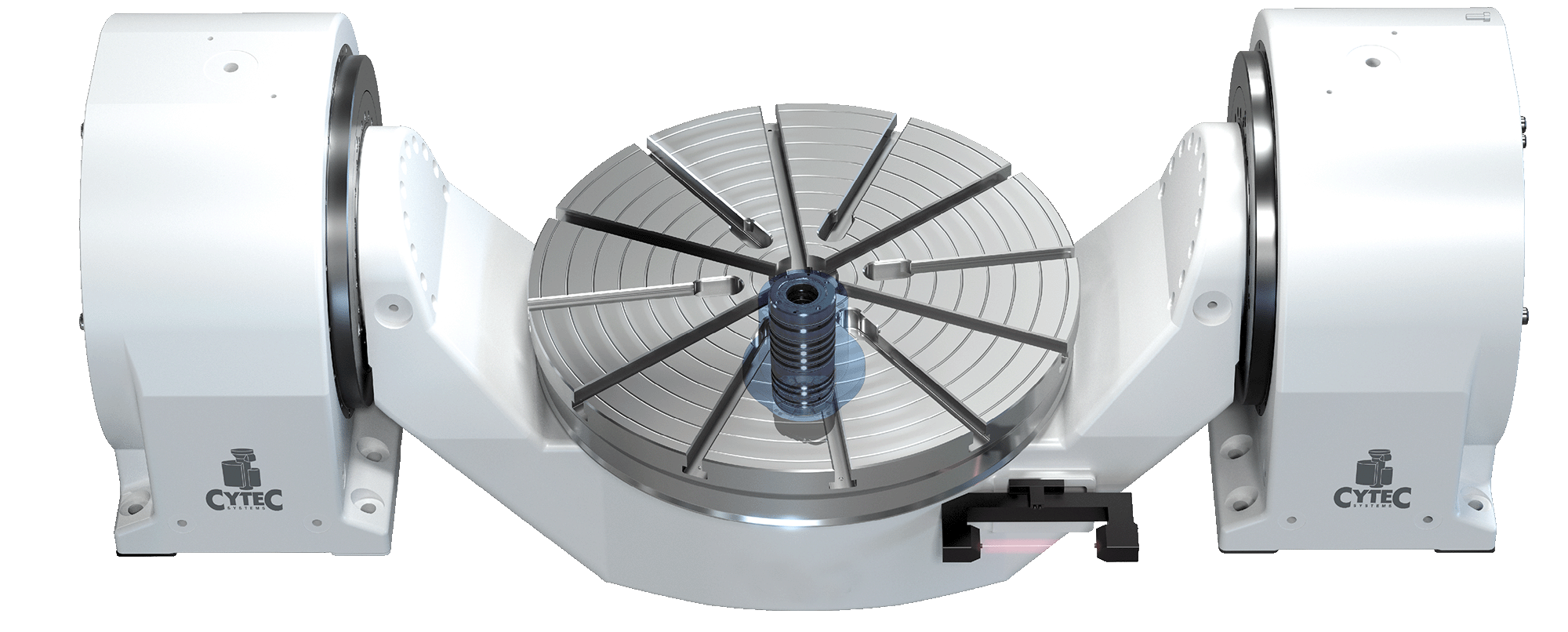 CYTEC rotary tables are built to be robust and highly durable. Available in various diameters up to 2,000 mm, they are suitable for a wide range of applications – whether as rotary, milling, or grinding tables. Rotary unions for air or oil supply allow easy integration into automation systems and the use of a wide variety of clamping devices.